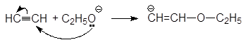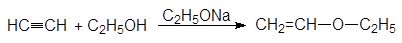 Спирты присоединяются к ацетилену в присутствии алкоксидов и гидроксидов щелочных металлов с образованием виниловых эфиров: