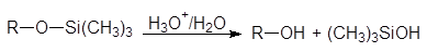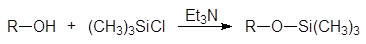 Гидроксильная группа может быть защищена в нейтральной и щелочной среде превращением ее в триметилсилилэфирную группу. Эта реакция, называемая силилированием, проводится в присутствии третичного амина.