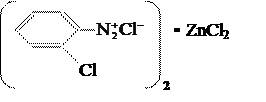 Одна из таких форм – двойная соль диазосоединения с солями тяжёлых металлов, например хлористым цинком. Её получают добавлением хлористого цинка к раствору соли диазония. При последующем добавлении хлористого натрия двойная соль выпадает в осадок, её отфильтровывают и сушат при низкой температуре. Строение соли отвечает формуле