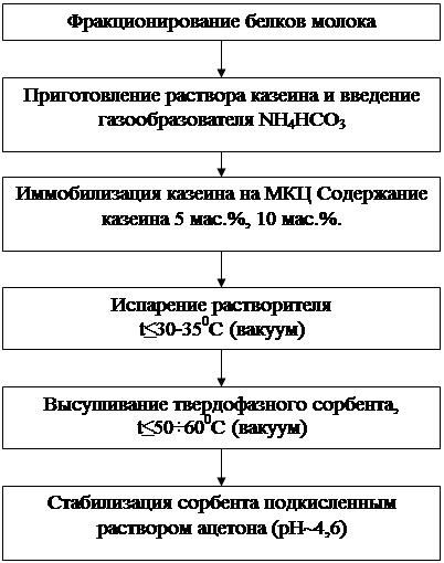 Жесткой матрицы для иммобилизации казеина служила МКЦ - неионогенный гидрофильный полисахарид. Модификацию поверхности МКЦ казеином проводили в соответствии с методикой изложенной в работе [14].