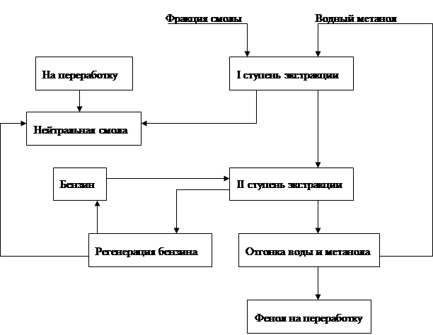 Рис. 1.1. Схема экстракции фенолов из фракции смол коксования и полукоксования углей водным метанолом.