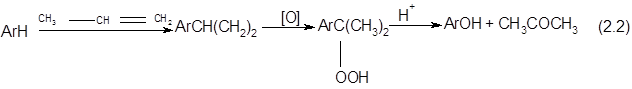 Ïðè èñïîëüçîâàíèè â êà÷åñòâå ñûðüÿ óãëåâîäîðîäîâ àðîìàòè÷åñêîãî ðÿäà ñèíòåç ôåíîëîâ ìîæíî ïðåäñòàâèòü â îáùåì âèäå êàê îêèñëåíèå óãëåâîäîðîäîâ.