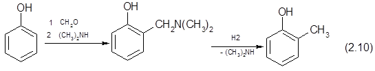 Âìåñòî ìåòàíîëà âîçìîæíî àëêèëèðîâàíèå ôîðìàëüäåãèäîì. Îáðàçóþùååñÿ ìåòèëîëüíîå ïðîèçâîäíîå ïåðåâîäèòñÿ â ìåòèëôåíîë ÷åðåç ïðîìåæóòî÷íîå îáðàçîâàíèå Øèôôîâà îñíîâàíèÿ.
