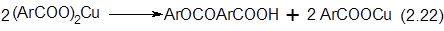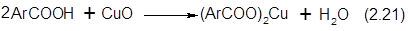 Термическое разложение бензоата меди было описано еще в 1845 г., позднее появился ряд статей, касающихся данного вопроса. Эти работы показали, что при сухой перегонке бензоата образуются фенол, бензол, бензойная кислота, салициловая кислота, фенилбензоат. В пятидесятые годы нашего столетия появилась серия патентов, предлагавших применение этого процесса для получения фениловых эфиров и фенолов из арилкарбоновых кислот и арилсульфокислот. Важным и интересным является то обстоятельство, что гидроксильная группа получаемого фенола становится в орто-положение к удаляемой карбоксильной или сульфогруппе. Так, из о- и n-толуиловых кислот, а также из n-толуолсульфокислоты образуется м-крезол, из м-толуиловой — о- и п-крезолы, из о-хлорбензойной и п-хлорбензойной кислот м-хлорфенол; из мезитиленовой кислоты 2,4-ксиленол, из α- и β-нафтойных кислот β-нафтол.