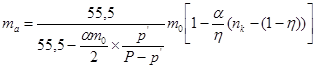 молей воды. Количество воды, уносимой с водородом в виде паров воды, составит: