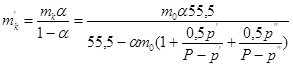 и подсасываемого к хлору воздуха, то количество молей влаги, уносимой с хлор-газом в виде паров, составит: