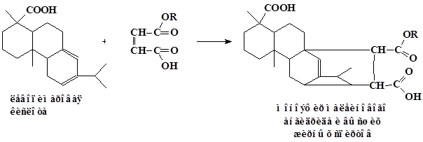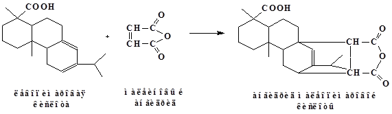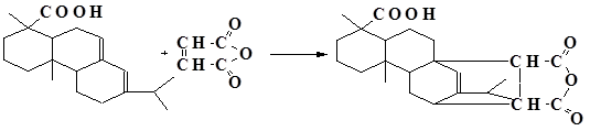 При температуре 80-95 0С в реакцию модификации с малеиновым ангидридом из всех присутствующих в терпентине кислот вступает левопимаровая кислота: