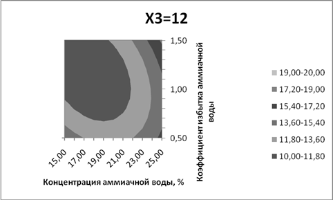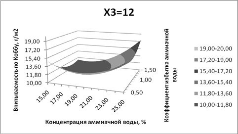 При значении х3=12 увеличение значения фактора Х1 приводит к уменьшению значения показателя Y2. Увеличение значения фактора X2 приводит к уменьшению значения показателя Y2. В большей степени на показатель Y2 оказывает влияние фактор X1.