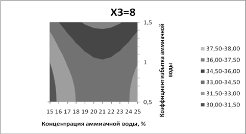 Рисунок 4.3 - Двумерные сечения поверхностей отклика при различном количестве раствора едкого натра