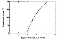 Температура помутнения сильно зависит от длины полиоксиэтиленовой цепи и в меньшей степени от размера гидрофобного радикала. Обычно точка помутнения регистрируется для некоторой фиксированной концентрации НПАВ. Из приведенных выше фазовых диаграмм можно определить, что точка помутнения для C^Eg равна ~80°С, а для СЕб и С12Е4-5О и - 100C соответственно. НПАВ с еще более короткими оксиэтиленовыми цепями не растворяются в воде даже при температуре замерзания, так что точка помутнения находится ниже O0C На рис. представлена зависимость точек помутнения при определенной массовой концентрации от числа оксиэтиленовых единиц для НПАВ с С12.