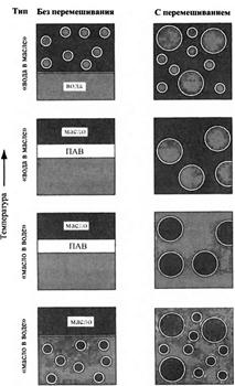 Микроструктуры микроэмульсий неионогенных ПАВ сильно изменяются с температурой. При низких температурах образуются микрокапельки масла, тогда как при высоких - микрокапельки воды. И снова обнаруживается поведение, прямо противоположное поведению ПАВ других классов.