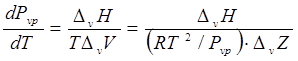 может быть связано с любым другим интенсивным свойством насыщенной жидкости (или пара), однако температура насыщения в этом случае наиболее удобна. Если паровая фаза находится в равновесии с жидкой фазой, то условие равенства химических потенциалов, температуры и давления обеих фаз приводит к уравнению Клаузиуса-Клапейрона: