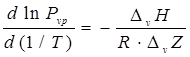от температуры, а константа интегрирования определяется по одной точке “давление паров -температура”.