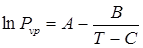 весьма похожее на уравнение Антуана, часто именно так и называют, а его графическое изображение считают диаграммой Кокса.