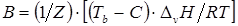 Другая, более употребительная форма корреляции Кокса-Антуана получена дифференцированием уравнения (7.7) по 1/T и сочетанием полученной зависимости с уравнением Клаузиуса-Клапейрона (7.3). Для нормальной точки кипения константы “A” и “B” выразятся в этом случае следующим образом: