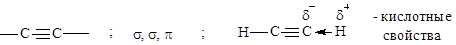 Алкины - углеводороды, содержащие в своем составе тройную связь. Общая формула - СnН2n-2. Молекулы алкинов имеют линейное строение благодаря sp-гибридиэации атомов углерода, связанных тройной связью.