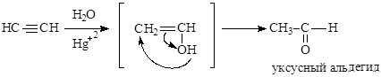 двухвалентной ртути и приводит к непредельному спирту, изомеризующемуся в карбонильное соединение.