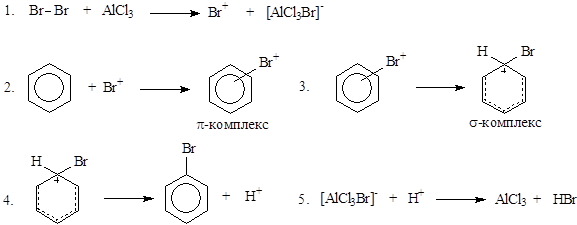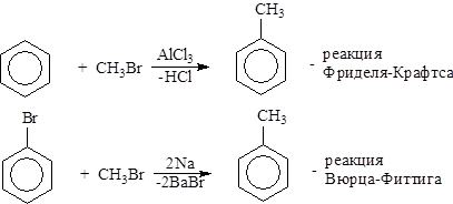 Проводится в присутствии катализатора А1С13, А1Вг3 или FeВг3.