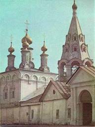 Богоявленская церковь Спасского монастыря возведена около 1647 г. (известно, что в 1647 г. В ней был устроен Покровский придел). Это очень эффектное и красивое здание, в котором зрительно противопоставлены две четкие геометрические формы: куб четверика церкви и восьмигранная пирамида ее колокольни. Контрастность сочетания пирамиды шатра колокольни с кубом воспринимается здесь особенно остро потому, что пирамидальность шатра подчеркнута его относительно небольшой высотой, а кубичность - отсутствием рядов кокошников на ее кровле и изысканной утонченностью ее глав (сами главы относятся к I- ой пол. ХVIII в.)