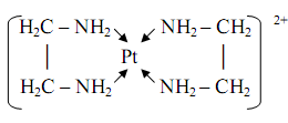 Большую группу хелатных комплексов образует этилендиамин H2NCH2CH2NH2 (часто для краткости обозначаемый En или en), дающий пятичленные металлоциклы, например, в комплексе платины(II)