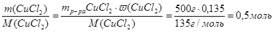 (CuCl2) = 0,5моль – 0,1моль = 0,4моль