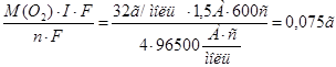 Вычислить массу газа, выделившегося на аноде при электролизе раствора серной кислоты, производившегося в течение 10 мин при силе тока 1,5А.