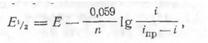 то построенный график представляет собой прямую, отсекающую на оси абсцисс птпр,!™ оавный потенциалу полуволны, так как при