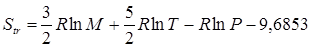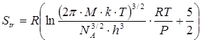 - число Авогадро; h – постоянная Планка. Подставив в это уравнение значения констант k, h, NA, при стандартном состоянии P = 1 атм = 101325 Па, получим формулу, удобную для практических расчетов энтропии поступательного движения: