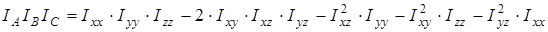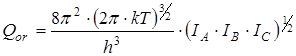 - моменты инерции молекулы (здесь n – число атомов в молекуле; mi – масса i-того атома; xi, yi, zi – координаты i-того атома в системе координат с центром, находящемся в центре инерции молекулы). Отсюда