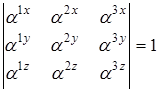 Затем находятся направляющие косинусы осей x, y, z относительно главных центральных осей 1, 2, 3 инерции молекулы. Направление осей выбирается таким образом, чтобы обе системы координат были или правыми, или левыми. При этом должно соблюдаться условие равенства единице определителя матрицы направляющих косинусов, т.е.