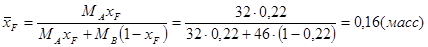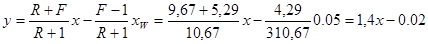 yF – концентрация низкокипящего компонента в паре на питающей тарелке. Определяется в точке пересечения линий рабочих концентраций, построенных при оптимальном флегмовом числе R=9,67.