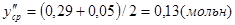 Рассчитываем средние концентрации низкокипящего компонента в жидкости: