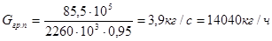 Расход греющего пара в кипятильнике (давление р=4кгс/см2, влажность 5%):