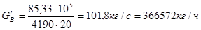 Расход воды в дефлегматоре при нагревании ее на 200С: