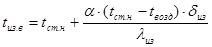 -температура внутренней поверхности изоляции, принимаем ее ориентировочно на 10-200С ниже средней температуры в колонне