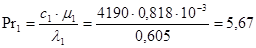 Критерий Прандтля для воды при средней температуре t1=28 ºС равен