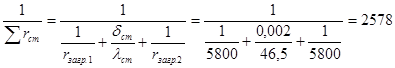 Примем тепловую проводимость загрязнений стенки со стороны греющего пара 1/rзагр.2=5800 Вт/(м2·К), со стороны бутанола 1/rзагр.1=5800 Вт/(м2·К) (таблица ХХХI [1]). Коэффициент теплопроводности стали λст=46,5 Вт/(м2·К) (таблица ХХVII [1]); δ=0,002 м – толщина стенки.