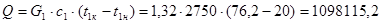 где с1=2750 Дж/(кг·К) – средняя удельная теплоемкость смеси при t1=55,6 ºС (рисунок XI [1]).
