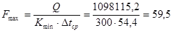 Ориентировочно определяем максимальную величину площади поверхности теплообмена. Минимальное значение коэффициента теплопередачи для случая теплообмена от конденсирующегося водяного пара к органическим жидкостям Кmin=300 Вт/(м2·К) (таблица 4.8 [1]). При этом