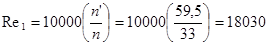 где μ1=1,275·10-3 Па·с – динамический коэффициент вязкости смеси при t1=55,6 ºС (таблица VI [1]);