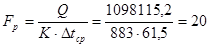 Принимаем к установке шестиходовой теплообменник с F=31 м2.