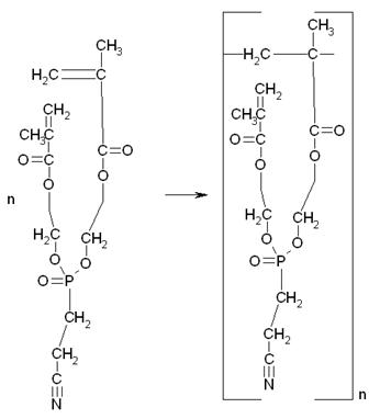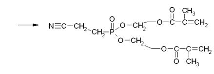 Согласно предложенной технологической схеме, процесс протекает следующим образом. Из емкостей хранения поз. 7 и 8, насосами 10 подаются соответственно диметиловый эфир β-цианоэтилфосфоновой кислоты и МЭГ подаются в мерные емкости поз. 2 и 1. Необходимое количество ингибитора полимеризации МЭГа – гидрохинона взвешивают на весах поз. 4 и добавляют в реактор 6 непосредственно перед началом реакции.