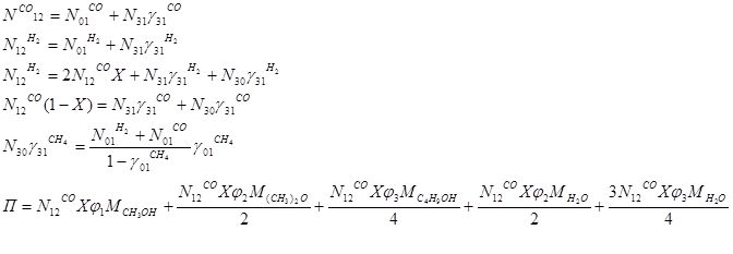 Материальный баланс химико-технологической системы производства метанола на 1500т метанола.