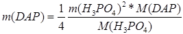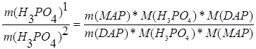 – массы фосфорной кислоты, необходимая для реакции образования МАФ (2.6.1) и реакции образования ДАФ (2.6.2) соответственно; M(MAP), M(DAP) – молярные массы МАФ и ДАФ соответственно;