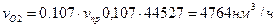 Загальний об'єм потоку, який поступає з печі випалення колчедану: