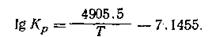 Звідси витікає, що, і рівноважний ступінь перетворення при даному складі газу також залежить від температури. Оскільки в рівнянні рівноважного ступеня перетворення цей ступінь входить і у вираз для правої частини, то знайти рівноважний ступінь перетворення можна тільки шляхом послідовних наближень. Визначаємо константи рівноваги для температур від 400 до. 650 °C, зводячи розрахунок в таблицю, де lg К, розрахований по приведеній вище формулі.