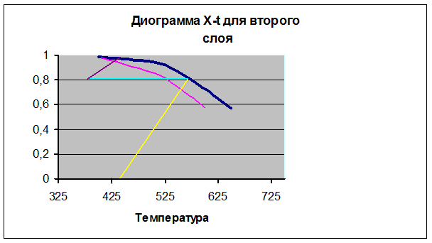 За одержаними даними для Хр і toпт будуємо графік X—t. На цей графік наноситься крапка, відповідна початковим умовам тобто t = 380°C і X=0,81.