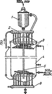 Аммиачные конденсаторы устанавливают в дополнение к водяным конденсаторам. Они являются второй ступенью охлаждения циркуляционного газа и служат для более полной конденсации из него аммиака. Ниже кратко описаны применяемые типы аммиачных конденсаторов.