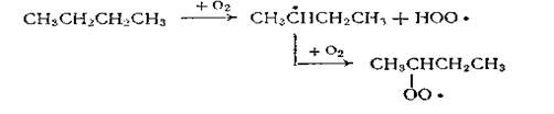 В Советском Союзе процесс жндкофазного окисления н-бутана разработан Н. М. Эмануэлем с сотр., исследованиями которых было установлено, что жидкофазное окисление н-бутана является автокаталитической цепной реакцией с вырожденным разветвлением цепи. Под влиянием кислорода происходит зарождение цепи с образованием сначала втор-бутилового, а затем втор-бутилпер-оксидного радикалов