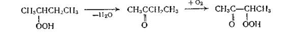 Образующийся гидропероксид может распадаться, причем получающийся метилэтилкетон при дальнейшем окислении дает α-кетогидропероксид: